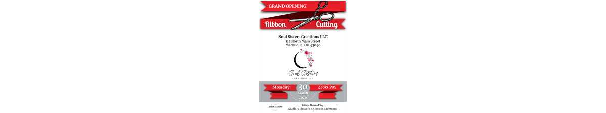 Please join us to celebrate the grand opening ribbon cutting for Soul Sisters Creations LLC on Monday, March 30th at 4:00 PM!